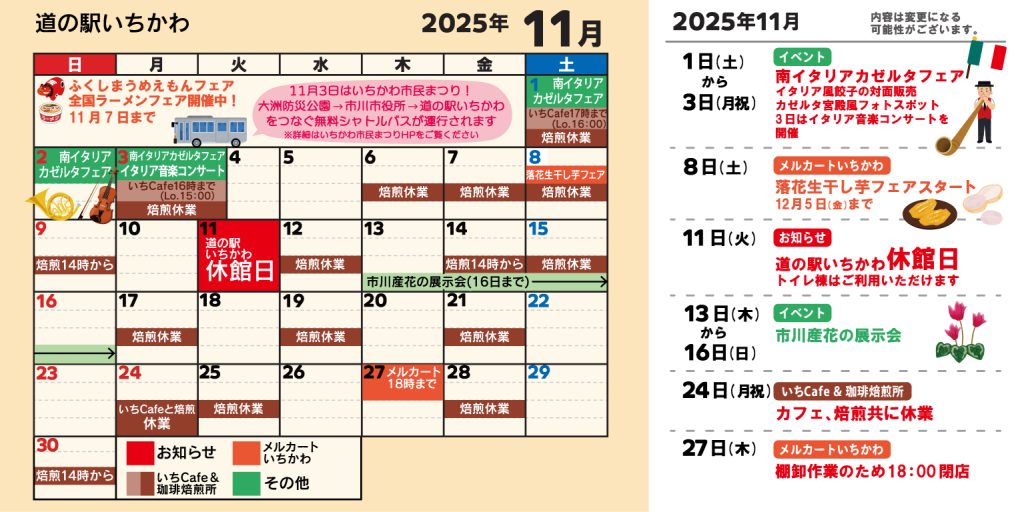 11月1日~3日はいちかわ市民まつりにあわせてイタリアフェアを実施します!